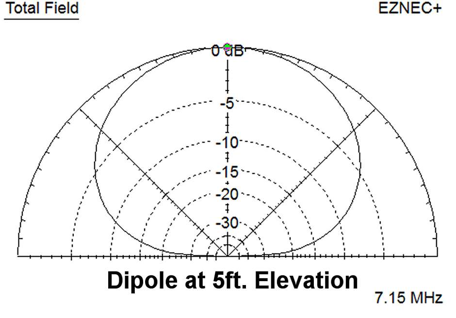 - A horizontal dipole mounted at a very low height would be an inefficient "cloud warmer". A low mounted small magnetic loop antenna works fine.