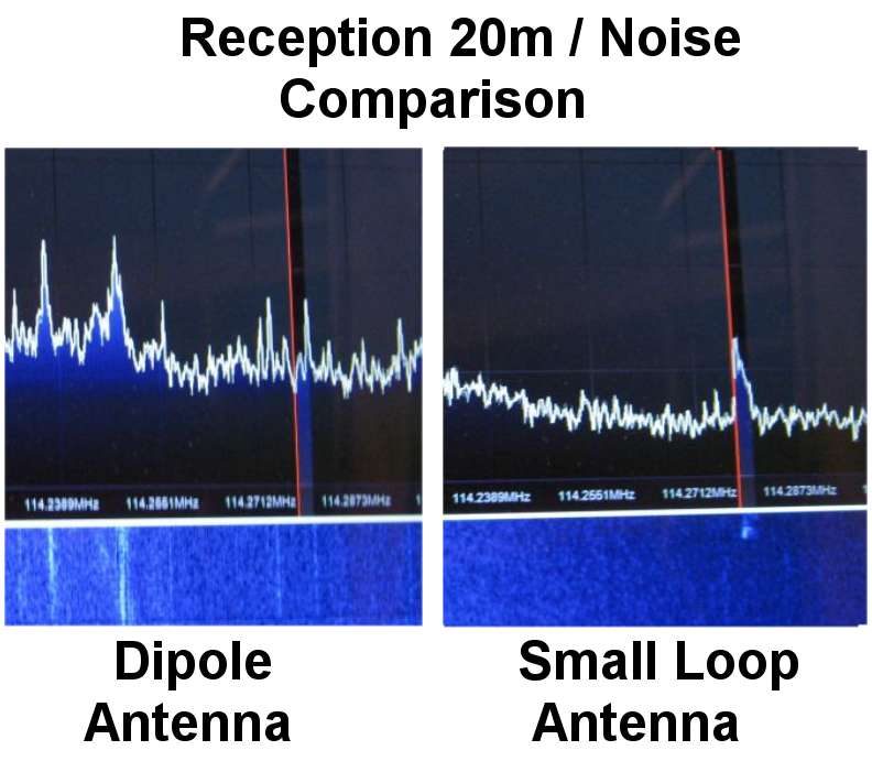 on the dipole and that general and local noise (spikes on the left side) are suppressed by the small loop antenna.